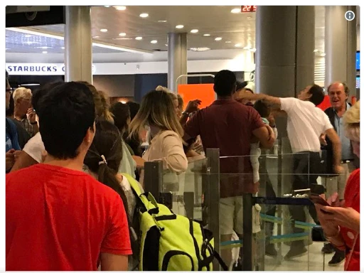 Arabella Arkwright, người quay lại đoạn phim cho biết trước đó mọi người đã được lên máy bay, nhưng họ lại tiếp tục phải đợi thêm 2 giờ đồng hồ nữa vì một sự cố trong quá trình tiếp nhiên liệu. Lúc bấy giờ hành khách được phép trở lại nhà ga nhưng không được phục vụ đồ ăn hay chỗ ngồi đàng hoàng. Lúc bấy giờ, do sự chờ đợi đã vượt quá mức giới hạn nên sự cố đáng tiếc đã xảy ra.