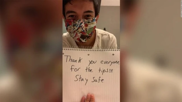 Gutierrez đăng video cám ơn mọi người vì đã ủng hộ cho mình số tiền tip lớn như vậy. Ảnh: CNN