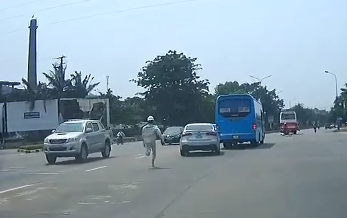 Các nhân viên ở trạm thu phí lên tiếng, thổi còi ra hiệu lệnh yêu cầu xe ô tô con dừng lại trả phí qua trạm, tuy nhiên tài xế không dừng. Một nam nhân viên liều lĩnh thả cả đôi dép chạy nhanh đuổi theo xe một đoạn dài. Kết quả xe ô tô con chạy nhanh, nhân viên thu phí không đuổi kịp.