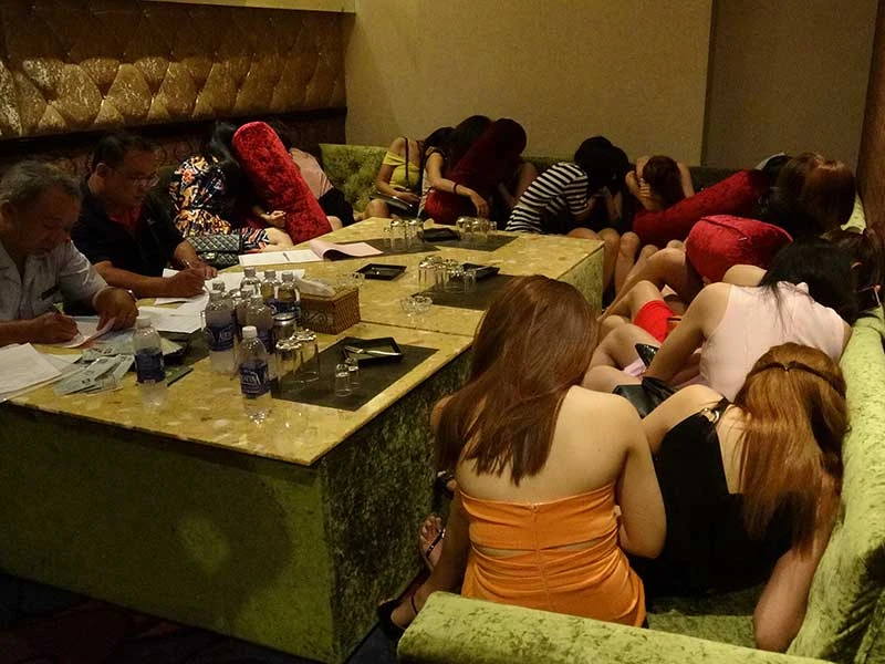 Đoàn kiểm tra liên ngành văn hóa-xã hội tiến hành kiểm tra một cơ sở vi phạm mới đây. (Ảnh do Chi cục Phòng, chống tệ nạn xã hội TP.HCM cung cấp)