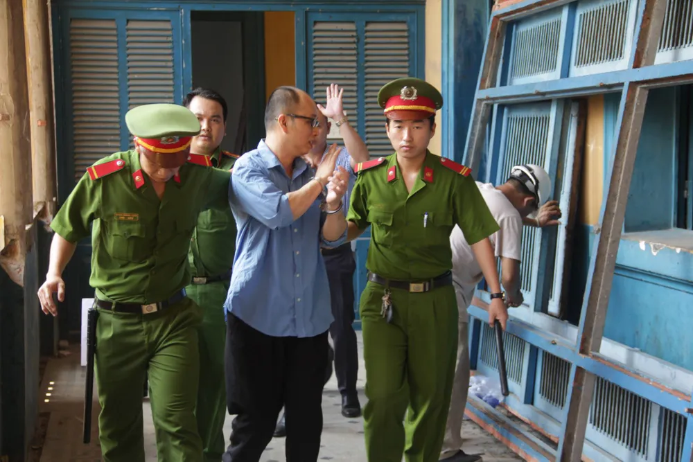 Bị cáo Nhàn vẫy tay chào người thân sau khi được giảm án.