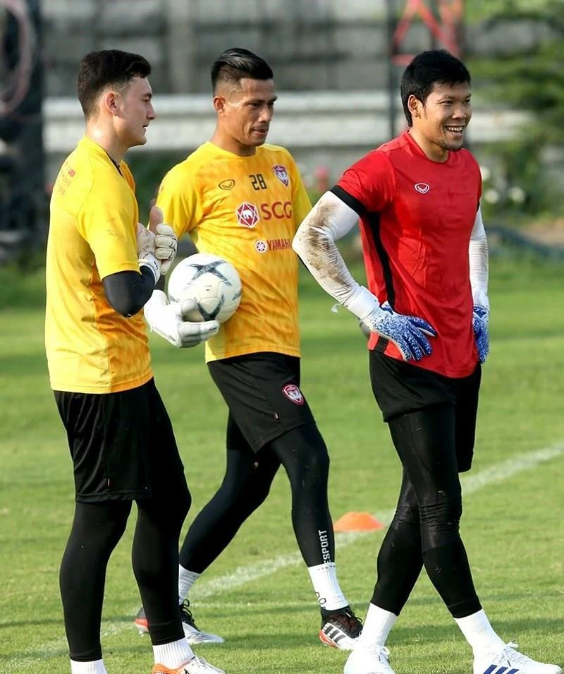 Các thủ môn của Muangthong, Kawin và HLV thủ môn.