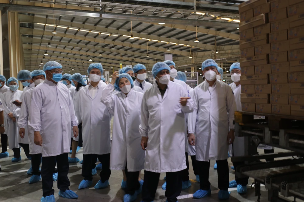 Tiếp đó, đoàn đến thăm và làm việc tại công ty cổ phần Sữa Việt Nam Vinamilk tại khu công nghiệp Mỹ Phước 2 (thị xã Bến Cát).