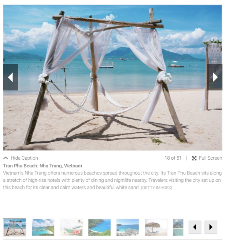 Bãi biển đường Trần Phú – Nha Trang được xếp hạng thứ 18/50 trong Top 50 bãi biển cát trắng đẹp nhất thế giới do USNews bình chọn.