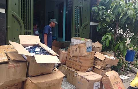 Hơn 70 thùng chứa TPCN, bao bì, nhãn mác bị cơ quan công an thu giữ. Ảnh: TÙNG SƠN