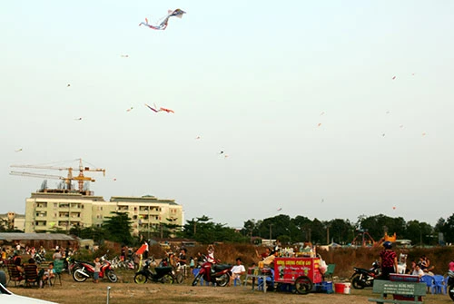 Bãi đất trống tại phường Đông Hưng Thuận có rất đông người tập trung thả diều.