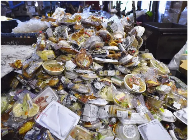 Thực phẩm còn sử dụng được nhưng bị loại bỏ. Ảnh: KYODO