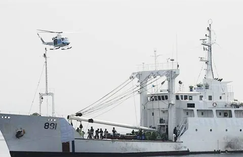Trực thăng Nhật Bản tham gia tập trận đối phó hải tặc với tàu Philippines. Ảnh: AFP