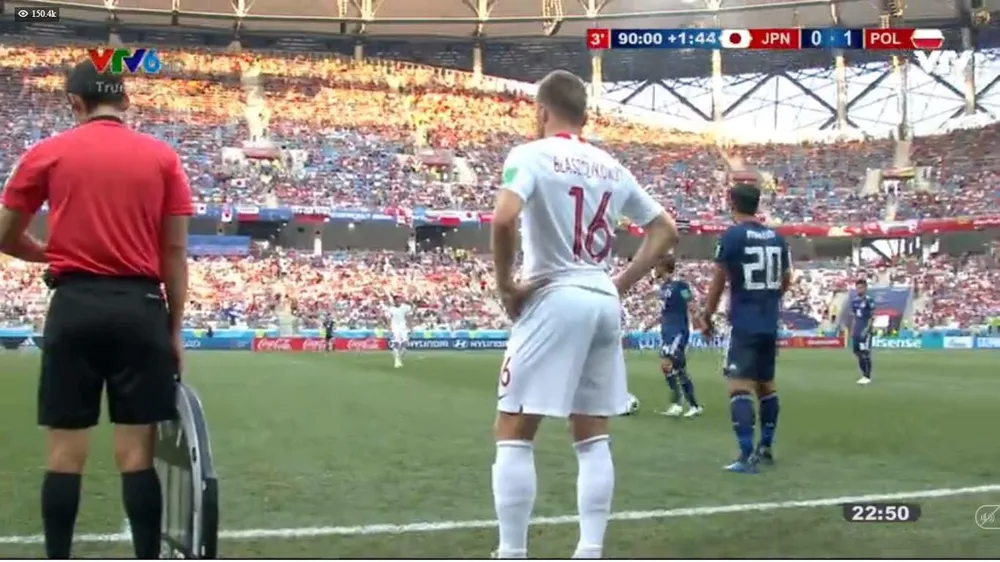 Cầu thủ Ba Lan phải chờ gần năm phút mới được vào sân thay người vì cầu thủ Nhật Bản cứ chuyền qua chuyền lại.