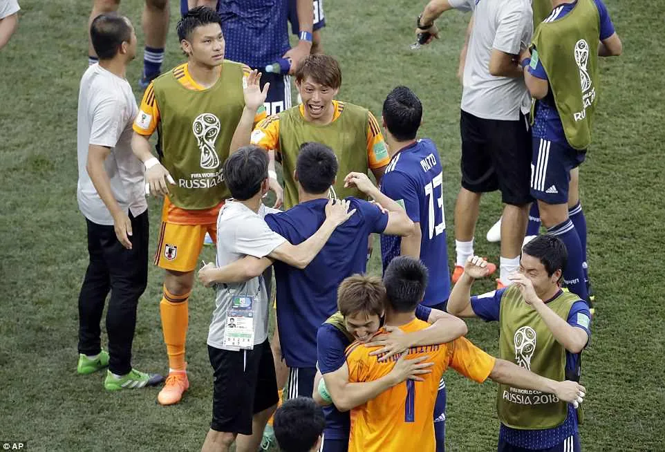 Các cầu thủ Nhật Bản vui mừng khi biết mình đi tiếp.