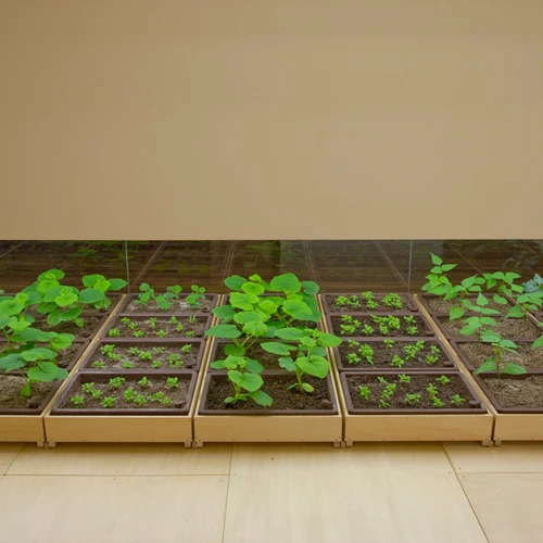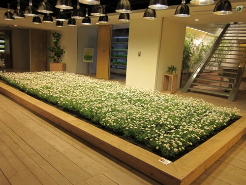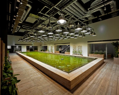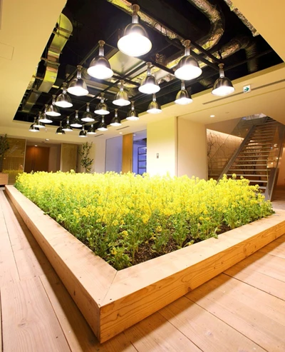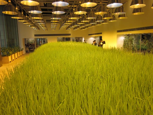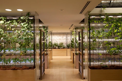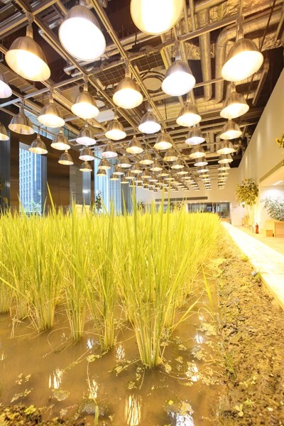 Tòa nhà có tổng diện tích 20.000 m2, trong đó 4.000 m2 được sử dụng để trồng 200 loại cây khác nhau như lúa, rau, cây ăn quả...