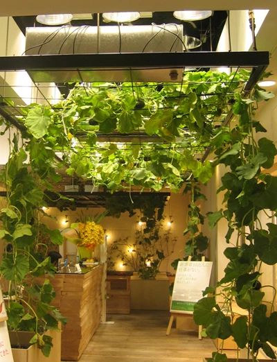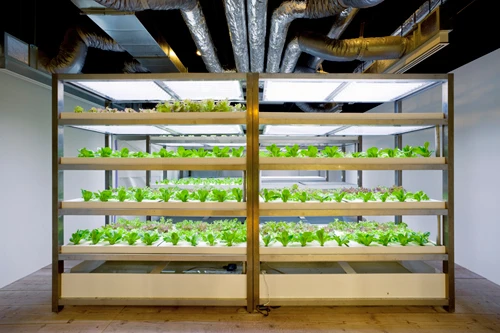 Dù trong nhà không có nắng nhưng cây vẫn phát triển tốt nhờ có hệ thống đèn LED.