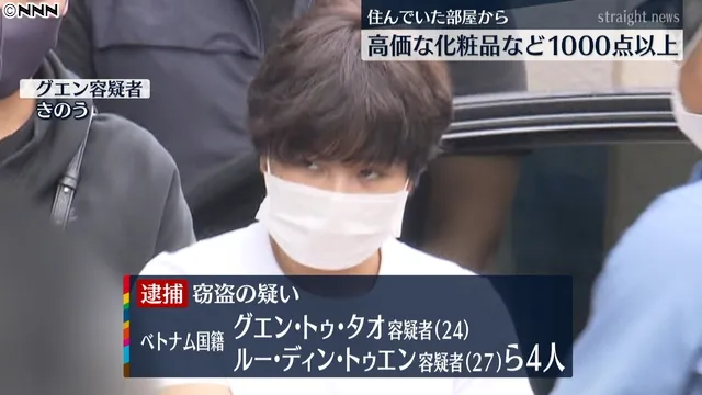 Hồi tháng 10-2019, cảnh sát Nhật cũng thông báo bắt một băng trộm người Việt trộm thực phẩm chức năng và mỹ phẩm.