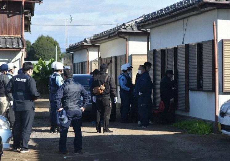 Cảnh sát lục soát một căn nhà có người Việt ở tại TP Ota. Ảnh: MAINICHI
