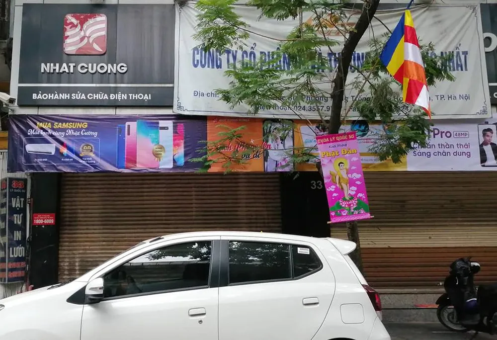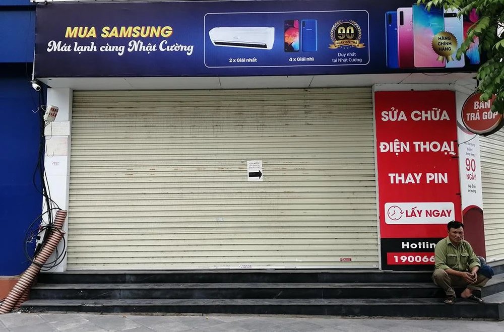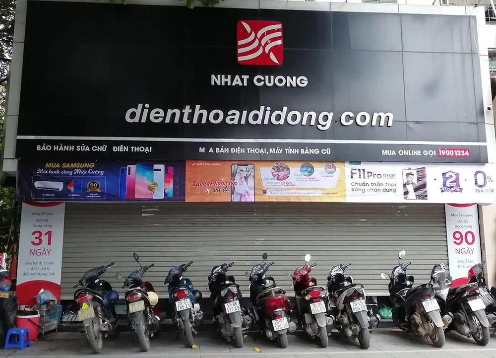 Cửa hàng Nhật Cường Mobile trên phố Láng Hạ đóng cửa sáng 14-5.