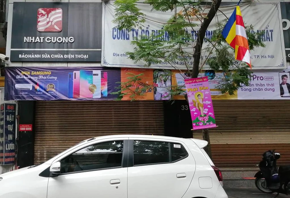 Cơ sở được coi là "đại bản doanh" của Nhật Cường Mobile trên phố Lý Quốc Sư cũng chưa mở cửa.