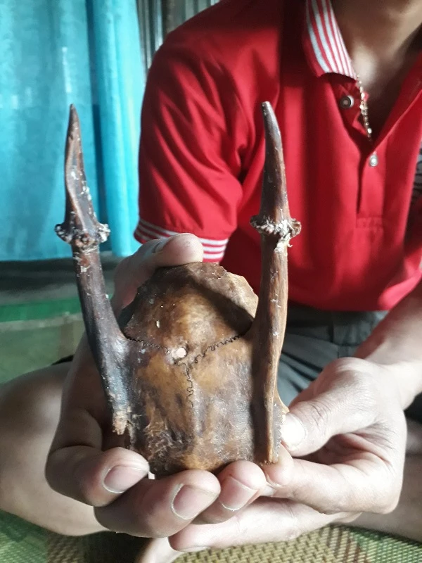 Cặp sừng dính với vỏ não được cho là sừng cheo. Ảnh: H.P