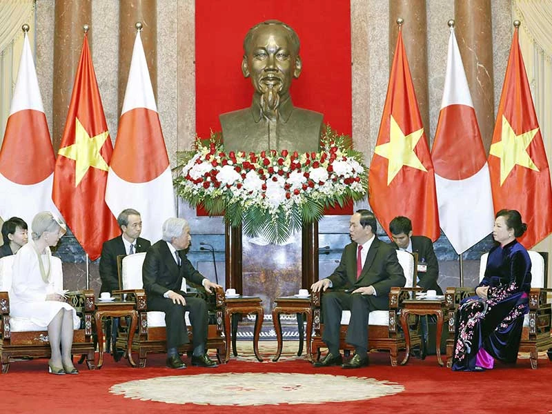Chủ tịch nước Trần Đại Quang và phu nhân hội kiến nhà vua Nhật Bản Akihito và hoàng hậu Michiko. Ảnh: TTXVN