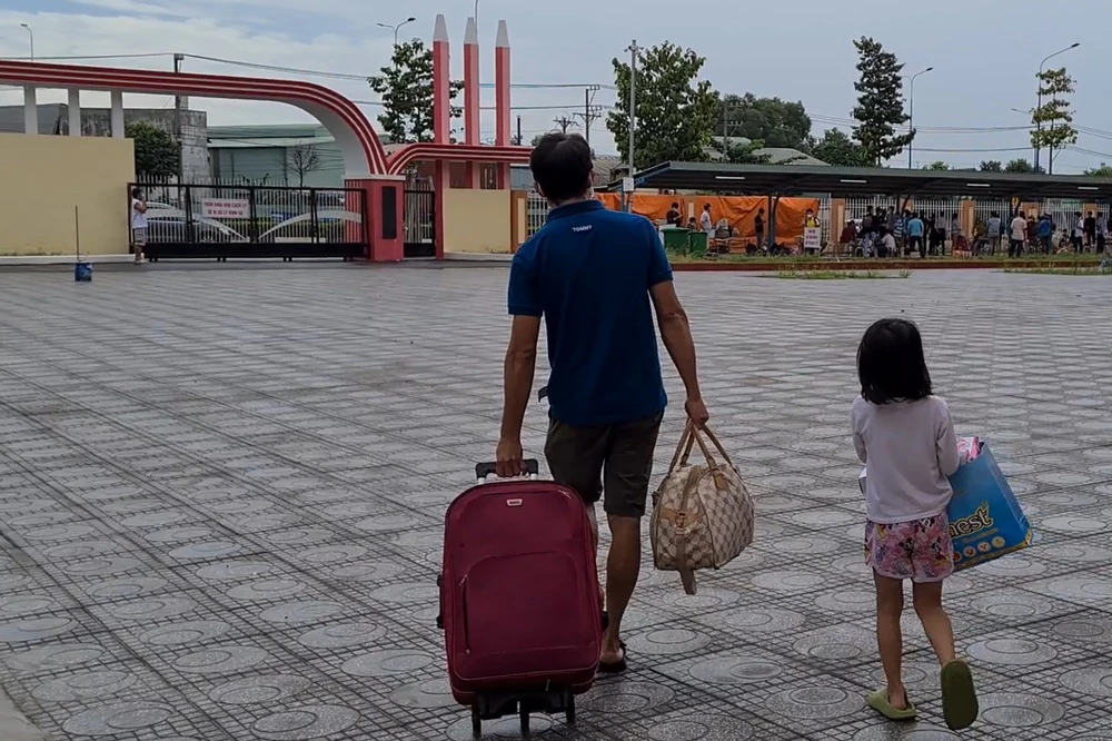 Gần 11 giờ, thủ tục cho những người được trở về đã hoàn tất, mọi người khệ nệ đồ đạc ra cổng chờ người thân đến đón về.