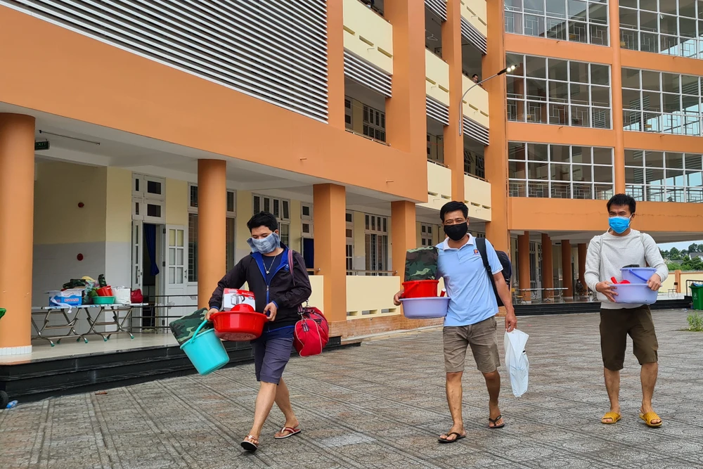 Khu cách ly bỗng rộn ràng bởi tiếng cười nói, khi mọi người được trở về nhà. Ảnh: LÊ ÁNH