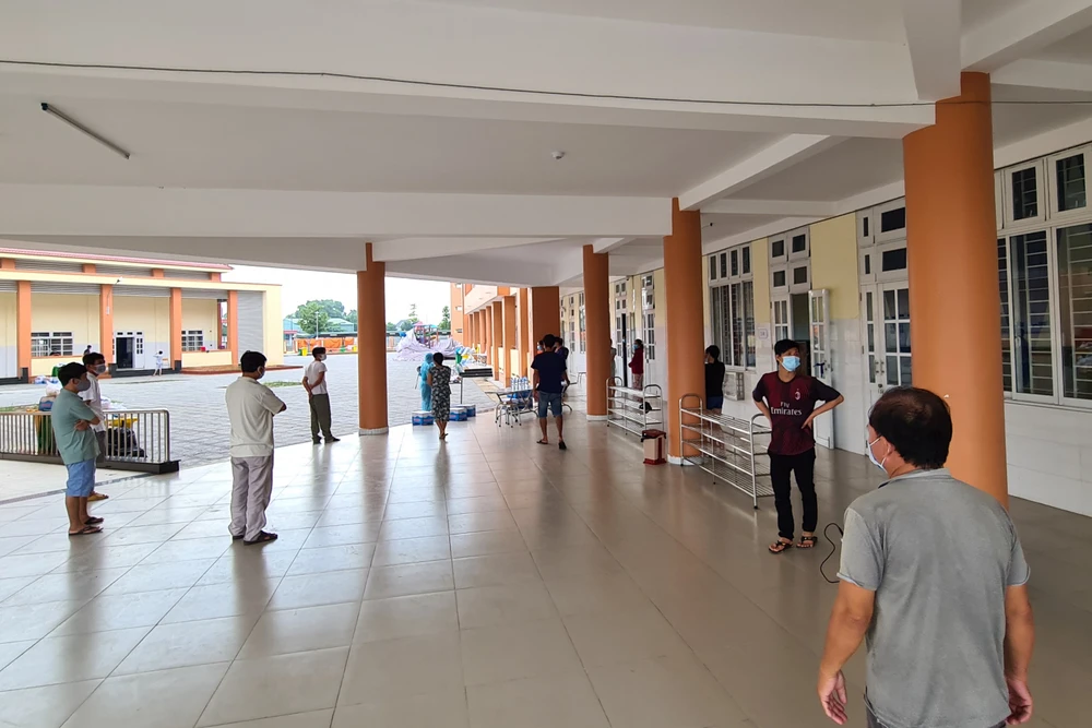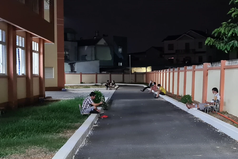 Lúc này, mọi người trong khu cách ly đã tắm giặt xong, nhiều người xuống sân, ra hàng lang đi dạo và chờ xuất cơm buổi tối.