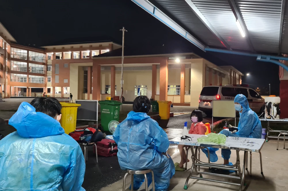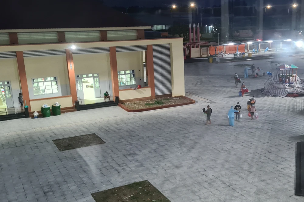 Đêm 12-7, chiếc xe cấp cứu những F1 từ từ tiến vào khu cách ly tại Trường tiểu học Phú Lợi 2 (phường Phú Lợi, TP Thủ Dầu Một, Bình Dương).