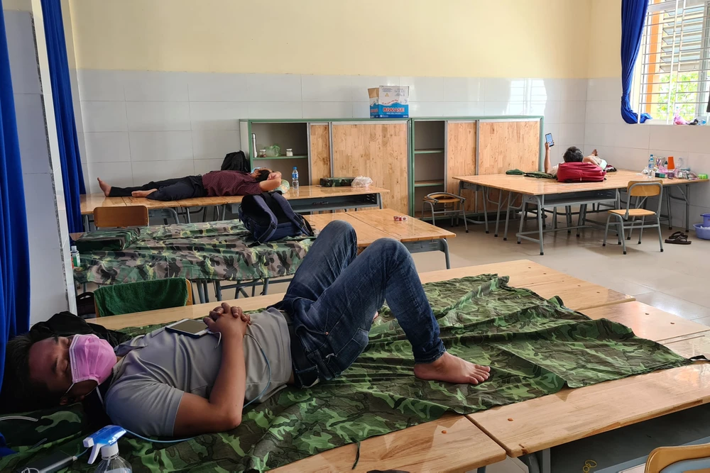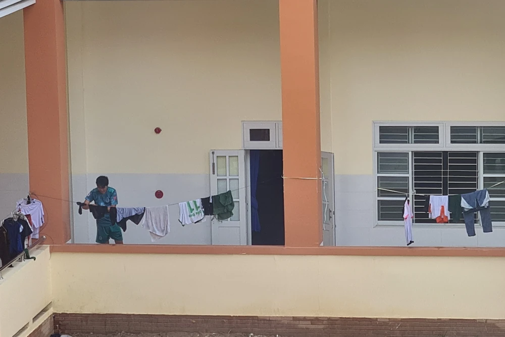 Sau giờ ăn cơm, mọi người nghỉ trưa, toàn bộ khu cách ly lại rơi vào bầu không khí vắng lặng. Khoảng 15 giờ, một số người đã tranh thủ đi tắm và giặt quần áo.