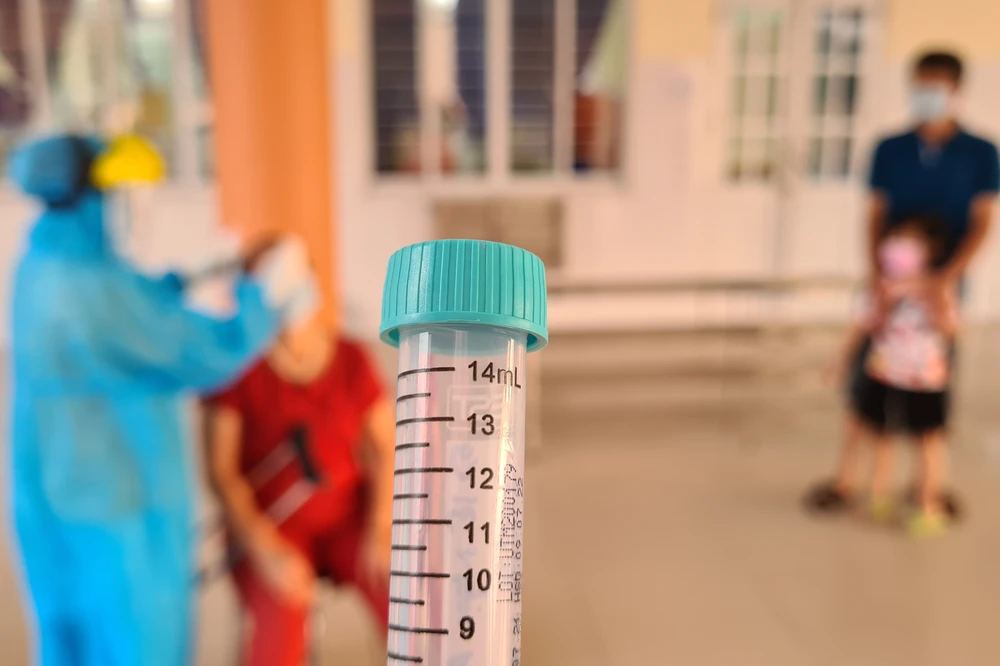 Những người mới đến được nhân viên y tế ấy mẫu xét nghiệm COVID-19. Ảnh: LÊ ÁNH