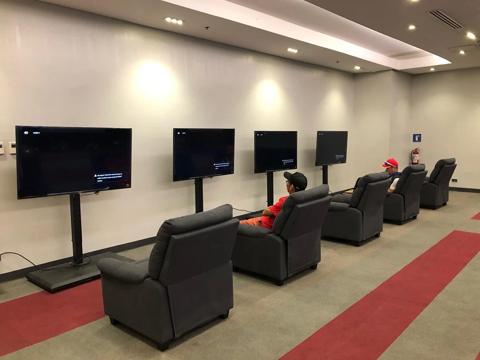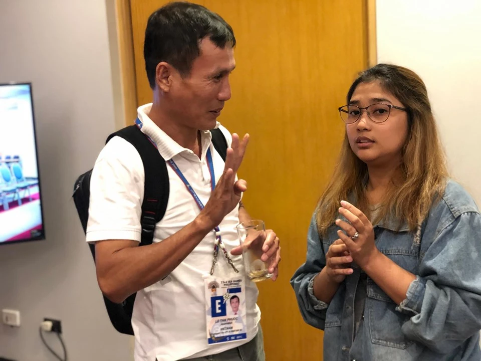 Sân vận động quốc gia Rizal Memorial còn ngổn ngang lắp đặt số ghế cho đủ 13.000 chỗ ngồi. Các tình nguyện viên SEA Games đeo thẻ làm nhiệm vụ lại ngẩn ngơ khi biết chúng tôi hỏi địa điểm Trung tâm báo chí. Phải mất mấy cuộc điện thoại, anh chàng Haims mới tìm ra Trung tâm báo chí lẫn điều hành SEA Games nằm trên tầng một trong khu thương mại World Trade Center bày bán đủ thứ đồ đạc.