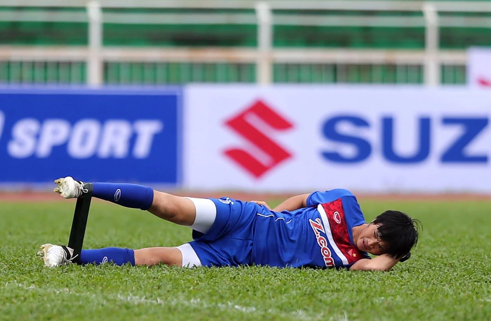 Có một chút lo lắng cho trường hợp của tiền vệ nhạc trưởng Tuấn Anh. Hôm qua (15-7), Tuấn Anh bị một đồng đội sút mạnh quả bóng vào ngay phần gối còn yếu, chỗ vết thương cũ khiến tiền vệ này nhói đau.