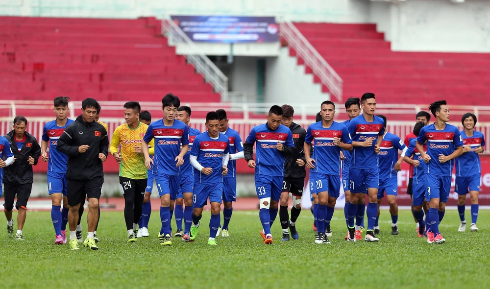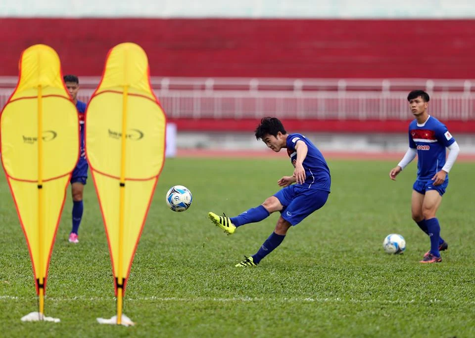 Chiều Chủ nhật, thầy trò HLV Nguyễn Hữu Thắng vẫn không xả hơi, toàn đội vẫn có một buổi tập chiều trên sân Thống Nhất. Ngoài bài đối kháng nhẹ trên nửa mặt sân hai hiệp thì HLV Nguyễn Hữu Thắng phân một nhóm cầu thủ tập sút phạt ngoài vùng cấm có hàng rào “người nộm”.