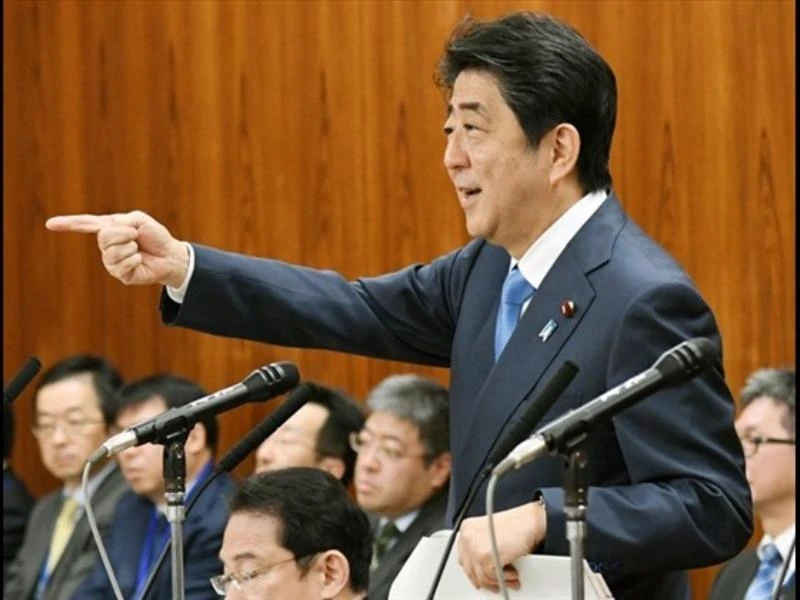 Thủ tướng Nhật Bản Shinzo Abe phát biểu tại phiên họp Quốc hội Nhật hôm 13-4. Ảnh: KYODO