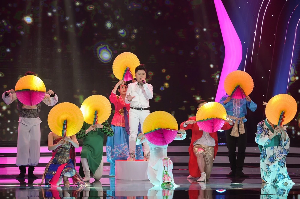 Phần trình diễn tự tin của Nhật Minh chinh phục giám khảo với ba điểm 10 và xuất sắc dành chiến thắng thứ hai liên tiếp trong vòng thi chủ đề Cánh én tuổi thơ.