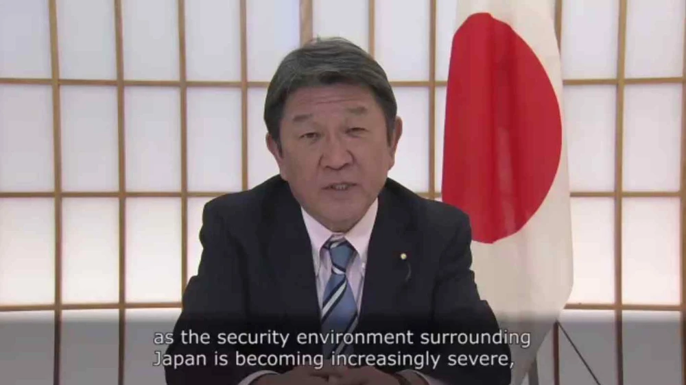 Ngoại trưởng Nhật Toshimitsu Motegi phát biểu hôm 3-3. Ảnh: NIKKEI ASIA