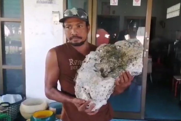 Một người nhặt rác trên bãi biển Thái Lan đã tìm thấy một vật lạ nặng 16,7 kg mà anh tin là chất nôn của cá voi có giá trị hơn nửa triệu bảng Anh (tương đương 15,5 tỉ đồng), theo báo Daily Mail.