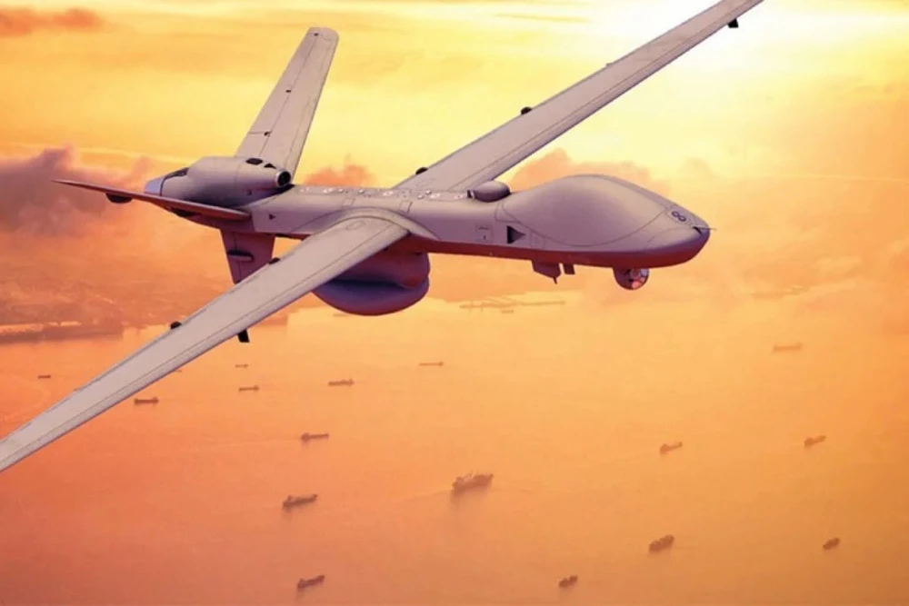 Một nghệ sĩ phác họa lại hình ảnh chiếc máy bay không người lái Sea Guardian do Mỹ sản xuất. Ảnh: SCMP