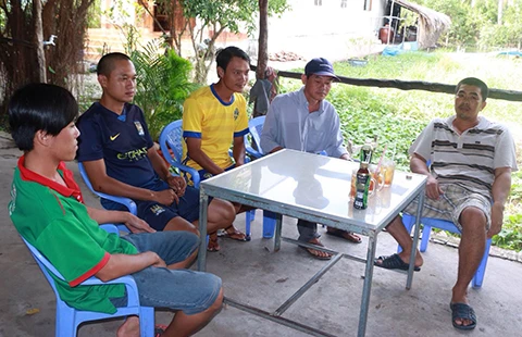 Anh Nguyễn Hoàng Tuấn (thứ hai từ trái) cùng những người có mặt trong cuộc nhậu hôm mua vé số. Ảnh: MINH NGỌC