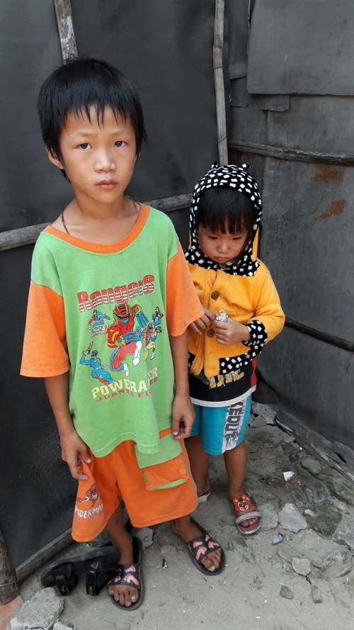 Được biết chị Khuê không còn ai thân thích, nhà chồng cũng rất nghèo. Chồng làm nghề đi biển mướn còn chị làm mướn cho một xưởng hấp cá cơm. Đứa con lớn dù đã bảy tuổi nhưng vẫn chưa được đi học, hai anh em đều bị suy dinh dưỡng.