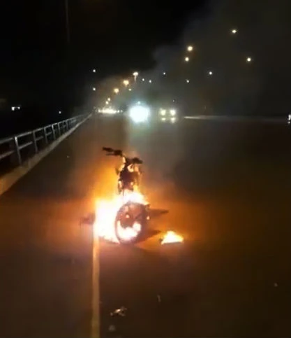 Chiếc xe máy bốc cháy dữ dội khi nam thanh niên đốt rồi nhảy cầu.