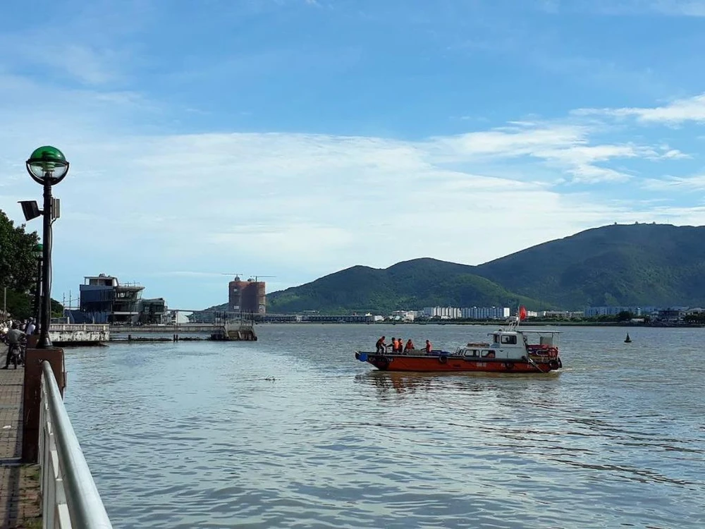 Lực lượng chức năng vẫn đang tổ chức tìm kiếm thi thể nam thanh niên nhảy xuống cứu người. Ảnh: HOÀI AN