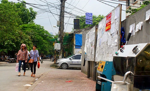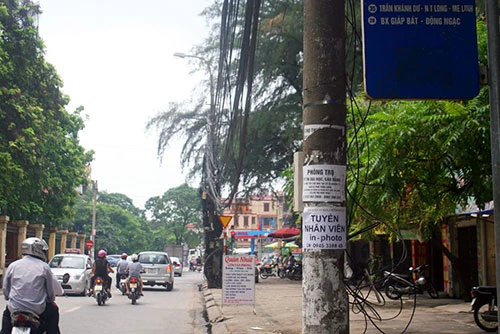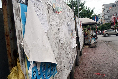 Dọc các tuyến phố Trần Cung, Xuân Thủy, Phạm Hùng, Dương Quảng Hàm,… người dân dễ dàng bắt gặp những hình ảnh nhếch nhác, sắp xếp thông tin lộn xộn, tờ sau chèn lên tờ trước hoặc gỡ xuống không sạch để lại những dấu vết rất khó nhìn trên các tấm bảng quảng cáo.
