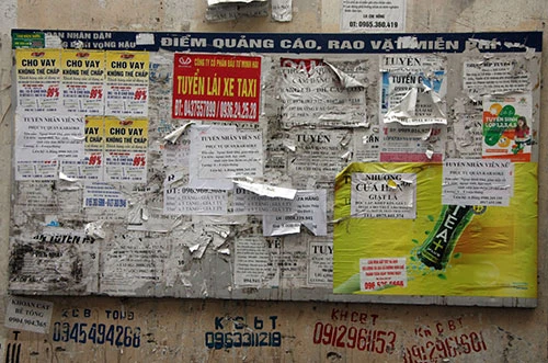 Mặc dù ở cạnh đó có bảng quảng cáo nhưng nhiều đơn vị tổ chức, cá nhân lại không chọn lựa để dán, thay vào đó họ chọn lựa là bờ tường, trạm biến áp, biển chỉ dẫn, chân cột đèn… hoặc in trực tiếp lên tường.