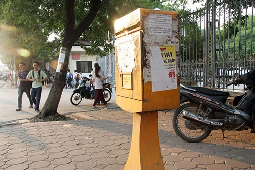 Hòm thư của Trường ĐH Sư phạm Hà Nội cũng bị dán chằng chịt. Đây có thể là do ý thức hoặc do bảng quảng cáo quá “bẩn”, nhìn rối mắt nên họ không được lựa chọn.