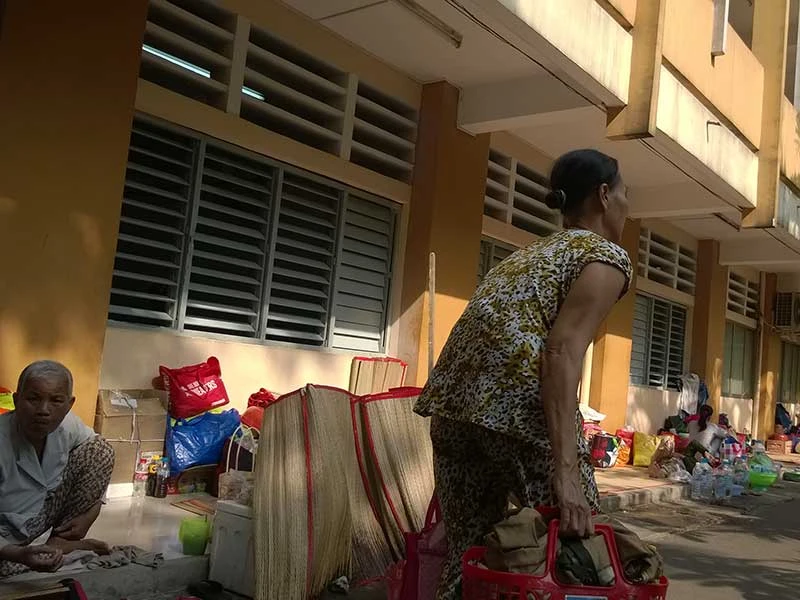 Do nhà xa, hoàn cảnh khó khăn không thể đi-về sau mỗi đợt vô hóa chất, xạ trị, mà thuê phòng bên ngoài thì lại không đủ khả năng (giá 80.000-150.000 đồng/đêm) nên bệnh nhân và người nhà của họ buộc phải tạm trú ở các dãy hành lang. Chính vì sự xô bồ này đã nảy sinh nhiều hình ảnh nhếch nhác.