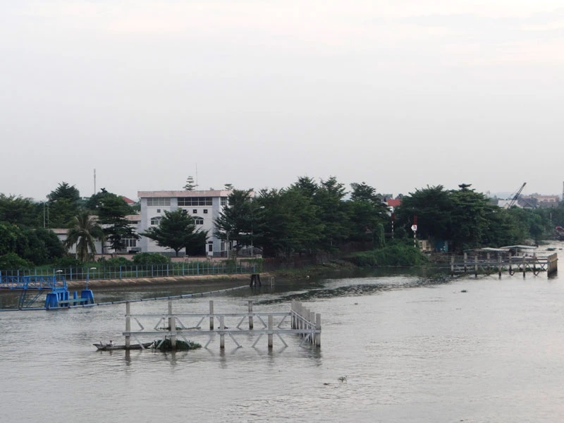 Hoạt động lấy nước thô trên sông Sài Gòn - ĐồngNai đã từng có lúc phải dừng lại do nước sông nhiễm mặn cao. Trong ảnh: Khu vực lấy nước thô trên sông Đồng Nai của Nhà máy nước Thủ Đức - TP.HCM. Ảnh: KB