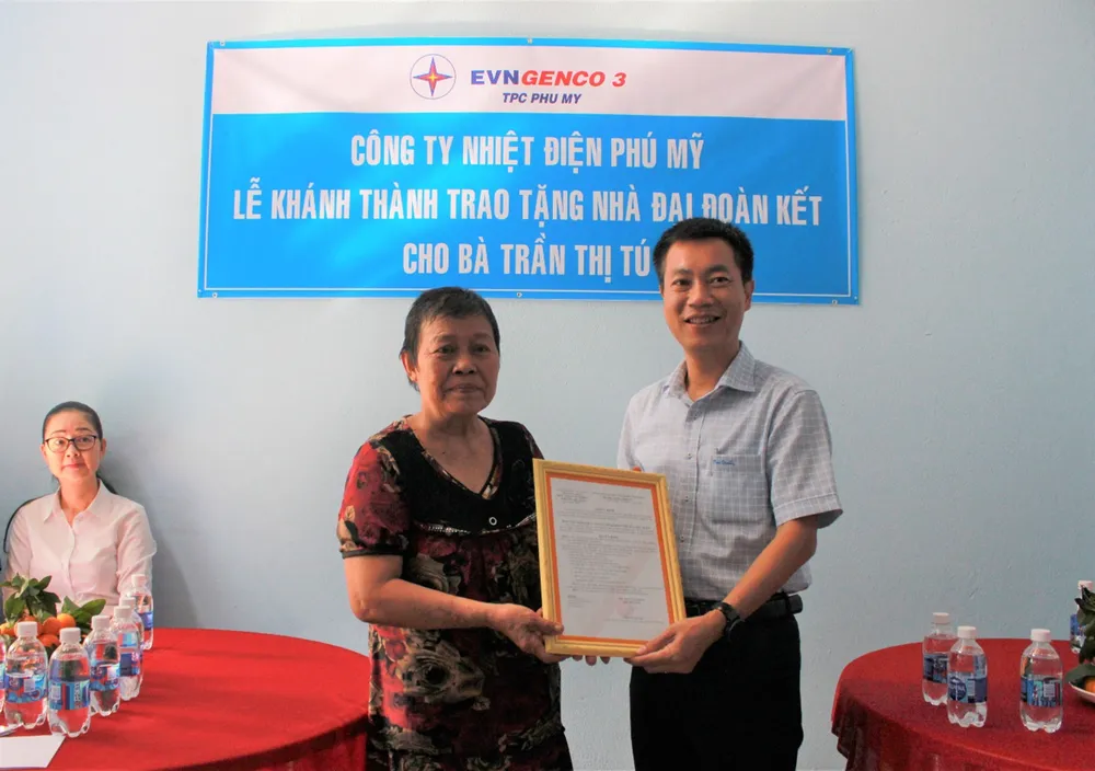 Trong đó, ngày 29-12, Công ty Nhiệt điện Phú Mỹ đã tổ chức lễ khánh thành và trao tặng nhà Đại đoàn kết cho hộ bà Trần Thị Tú. Ngôi nhà được thiết kế là loại công trình cấp IV, tường gạch, mái lợp tôn với tổng kinh phí xây dựng là 165 triệu đồng.