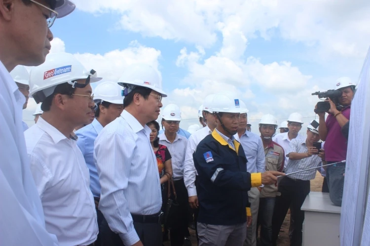 Báo cáo tại công trường, ông Nghiêm Đức Dương – Phó Trưởng Ban QLDA điện lực dầu khí Sông Hậu 1, cho biết tiến độ thi công đảm bảo đúng theo hợp đồng. Trong đó, nhà thầu chính cùng các nhà thầu phụ tập trung một số công việc chính như xử lý nền thuộc nhà máy chính, hoàn thiện các khu quy hoạch mặt bằng tổng thầu, nhà tạm.