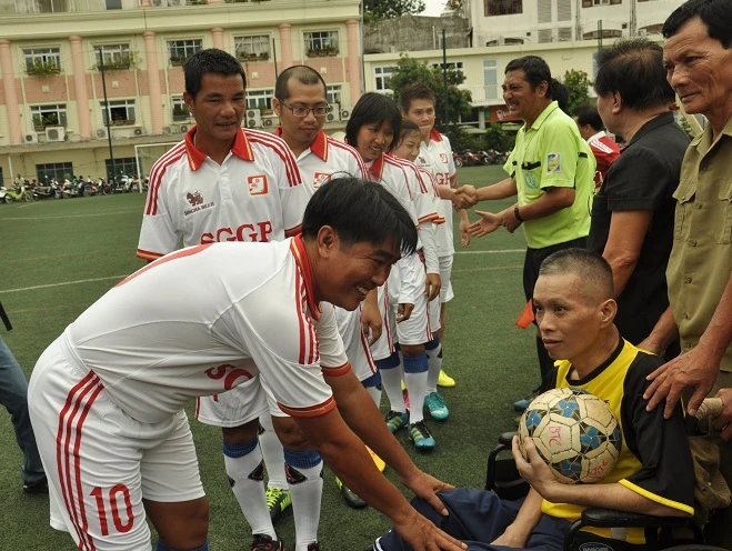 (PLO) - Sáng 29-8, sân thể thao Tao Đàn đã diễn ra trận bóng đá giao hữu, gây quỹ ủng hộ nhà báo Minh Hùng, người đã khai sinh ra những ý tưởng vàng cho thể thao Việt Nam. Trận đấu có sự góp mặt của nhiều danh thủ lừng lẫy một thời như Quả bóng vàng Trần Công Minh, Trần Minh Chiến, Nguyễn Hữu Đang, thủ môn Bùi Tấn Trường... Nhà báo Minh Hùng đã kiệt sức sau 4 lần bị đột quỵ song bạn bè, đồng đội đã giúp anh trình diễn một trần cầu tràn đầy nhiệt huyết và ân tình sâu nặng. Tinh thần và ý chí vững vàng của một người làm thể thao, chơi thể thao sẽ là sức mạnh cho nhà báo Minh Hùng vượt qua bệnh tật.
