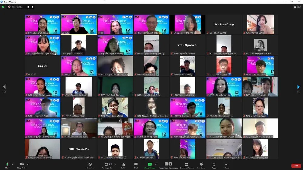 Các bạn trẻ tham gia chương trình và chia sẻ kiến thức qua hình thức trực tuyến