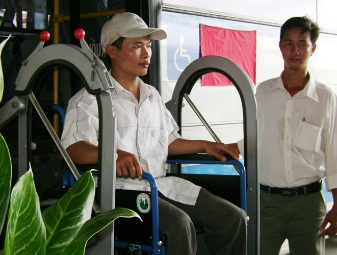 Dàn nâng xe lăn của NKT lên xe buýt hiện có ở rất ít xe buýt.